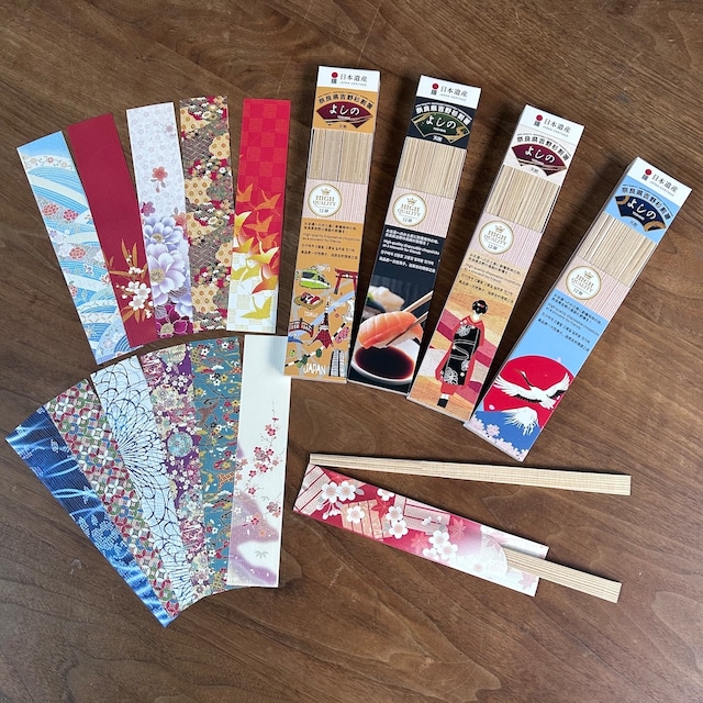 美しい木目が食事に視覚を取り込み、ほのかな杉の香りが食欲を高める効果があると言われる 奈良県吉野杉の割箸。 12膳入り、華やかな箸袋もついています(箸袋の色柄は都度、変更する場合があるため指定はできません) パッケージは4種類ありますのでご購入時にお選びください。 割箸は江戸時代(1700~1800年頃)に奈良県の吉野地方で、酒樽づくりの端材や間伐材の活用方法として生まれました。日本人の「もったいない精神」が根底に流れるものと言えるでしょう。 ご家庭、贈り物、海外へのお土産としてご活用ください。 These chopsticks are made from Yoshino cedar, a premium wood from Nara Prefecture, known for its beautiful grain. The warm texture of the wood enhances the visual enjoyment of a meal, while the gentle, natural aroma of cedar is said to stimulate the appetite. Each set includes 12 pairs of chopsticks, along with elegant decorative paper sleeves. Please note that the color and pattern of the sleeves may vary and cannot be specified. The packaging is available in four different designs, which can be selected at the time of purchase. These wooden chopsticks are believed to have originated in the Yoshino region of Nara during the Edo period (1700–1800), created as a way to reuse leftover wood from sake barrel production and forest thinning. They reflect the deeply rooted Japanese value of mottainai—the spirit of avoiding waste. Ideal for everyday home use, gifts, or souvenirs for overseas visitors. To use, simply pull the chopsticks apart into two separate sticks just before the meal.